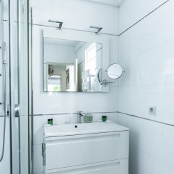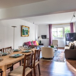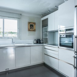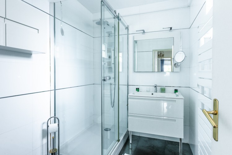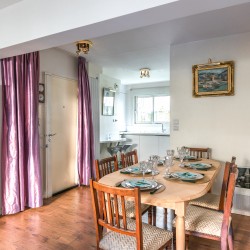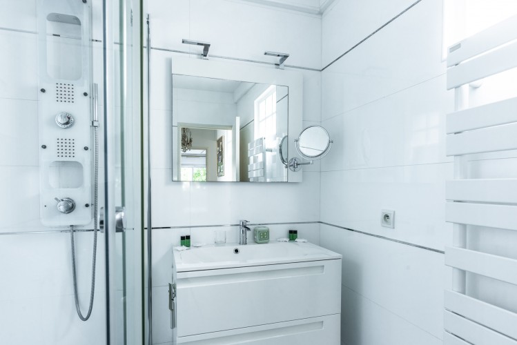 The kitchen is fully equipped with cooking plate, microwave, fridge, Nespresso machine, kettle, pans, toaster, washing machine, dryer, dishwasher, …).