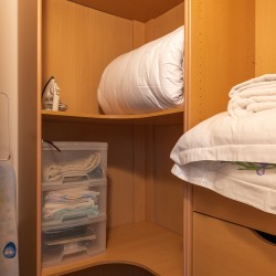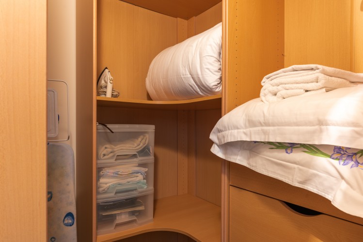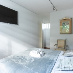 It has a large living room with sofa, TV and a dining space. It has an open kitchen with all equipments and 2 double bedrooms with 4* Queen size beds (160×200), 1 bathrooms with toilets.