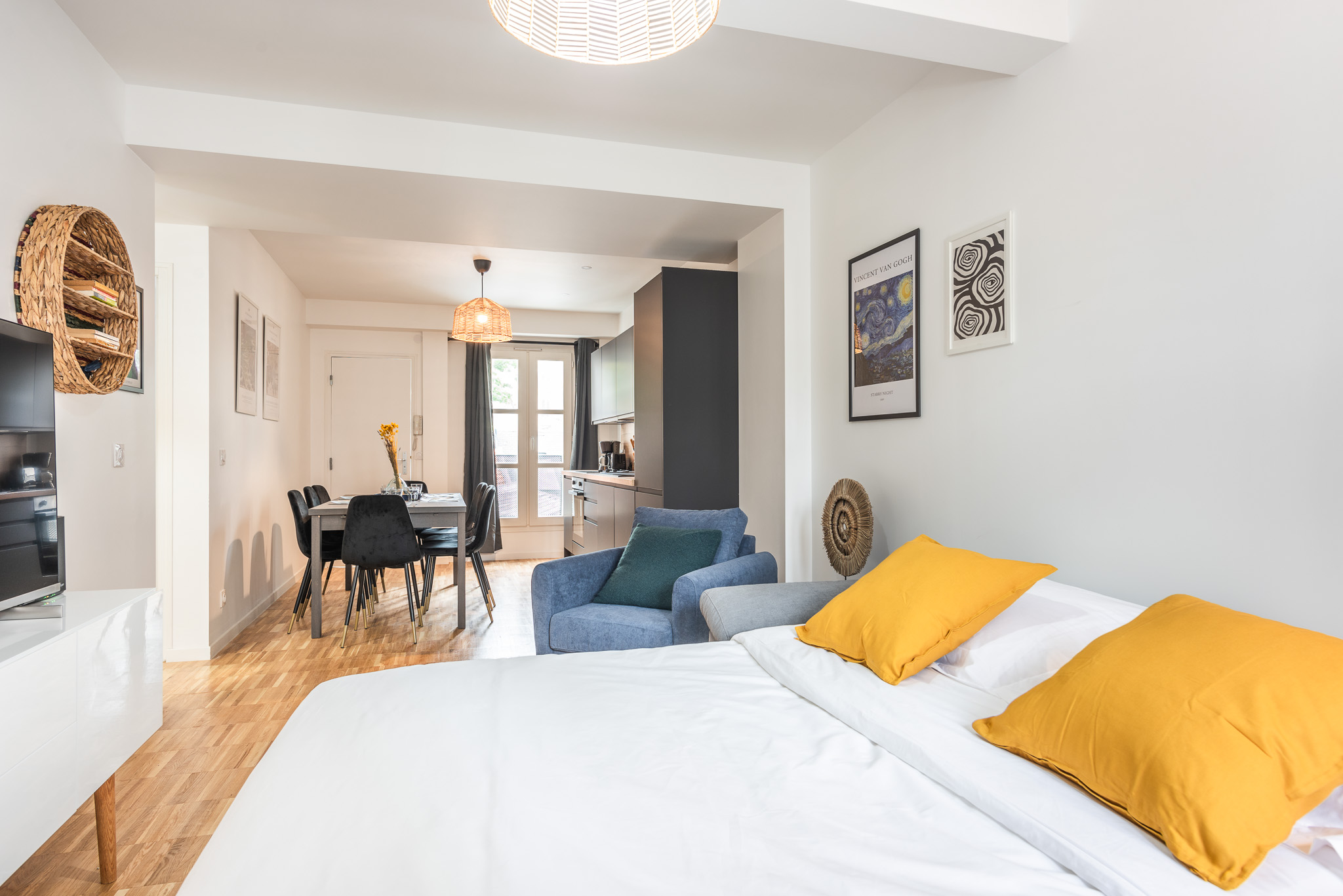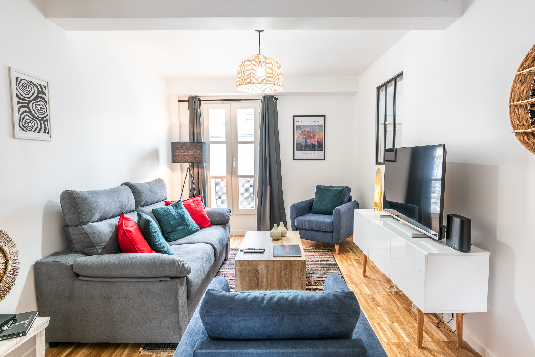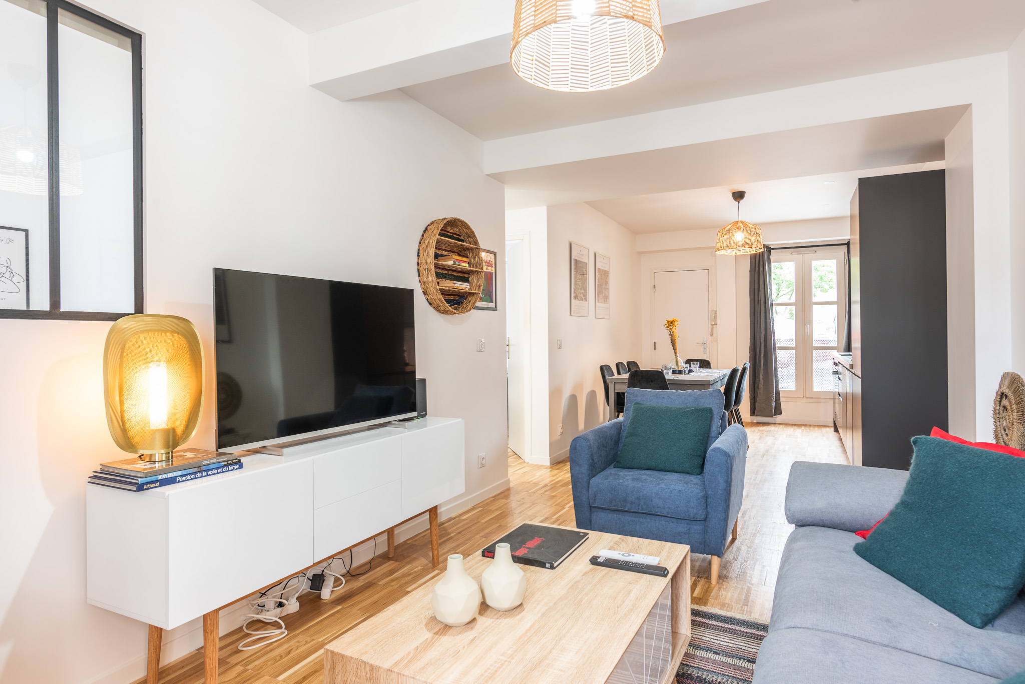 – Un grand séjour avec canapé convertible et TV