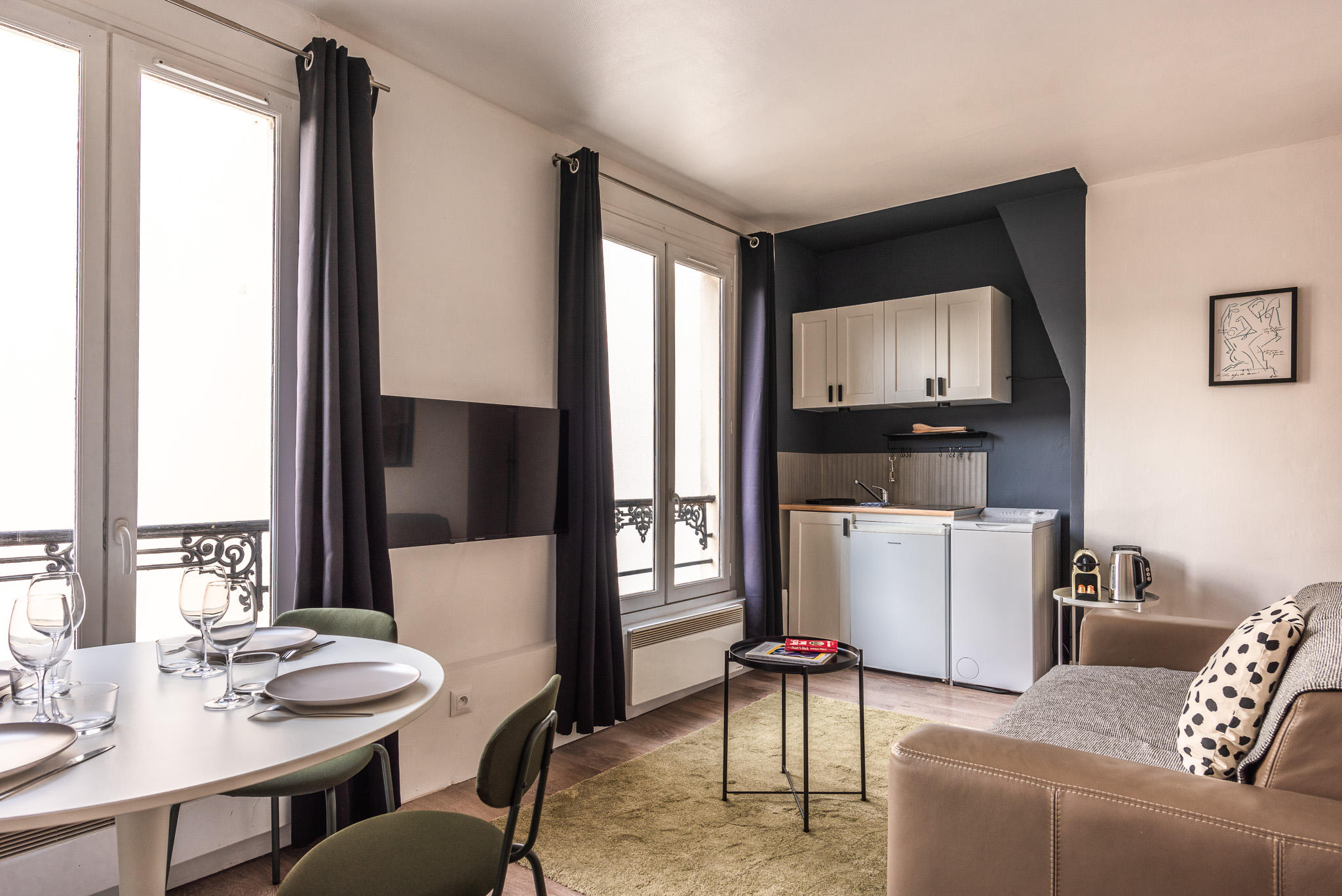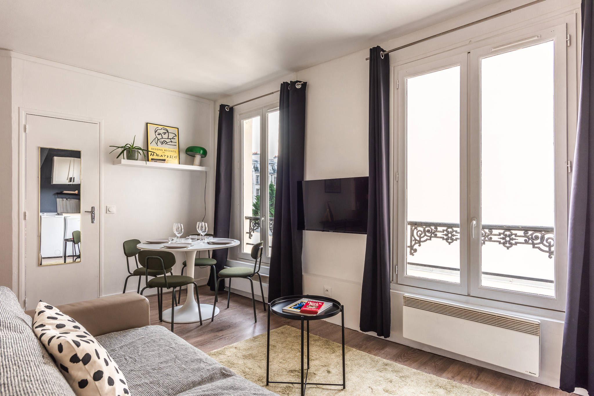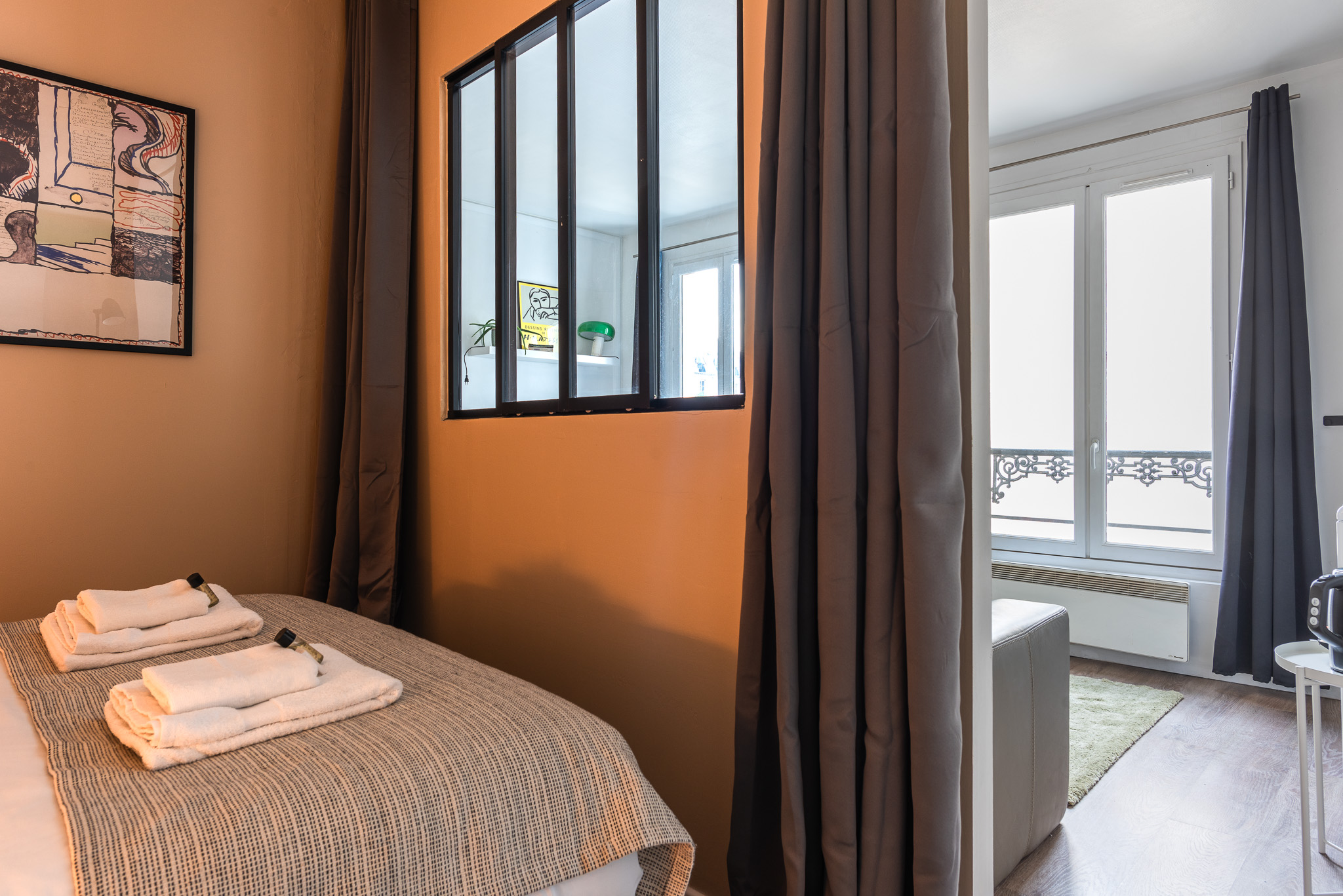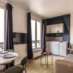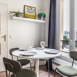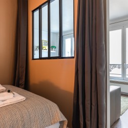 La décoration est recherchée avec le choix de couleurs apaisantes et d’oeuvres d’artistes, le tout dans une atmosphère typiquement parisienne : chaleureuse et design.