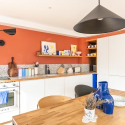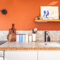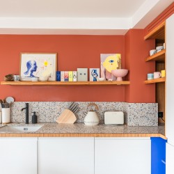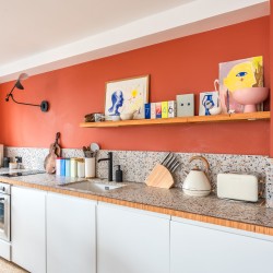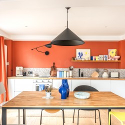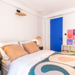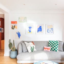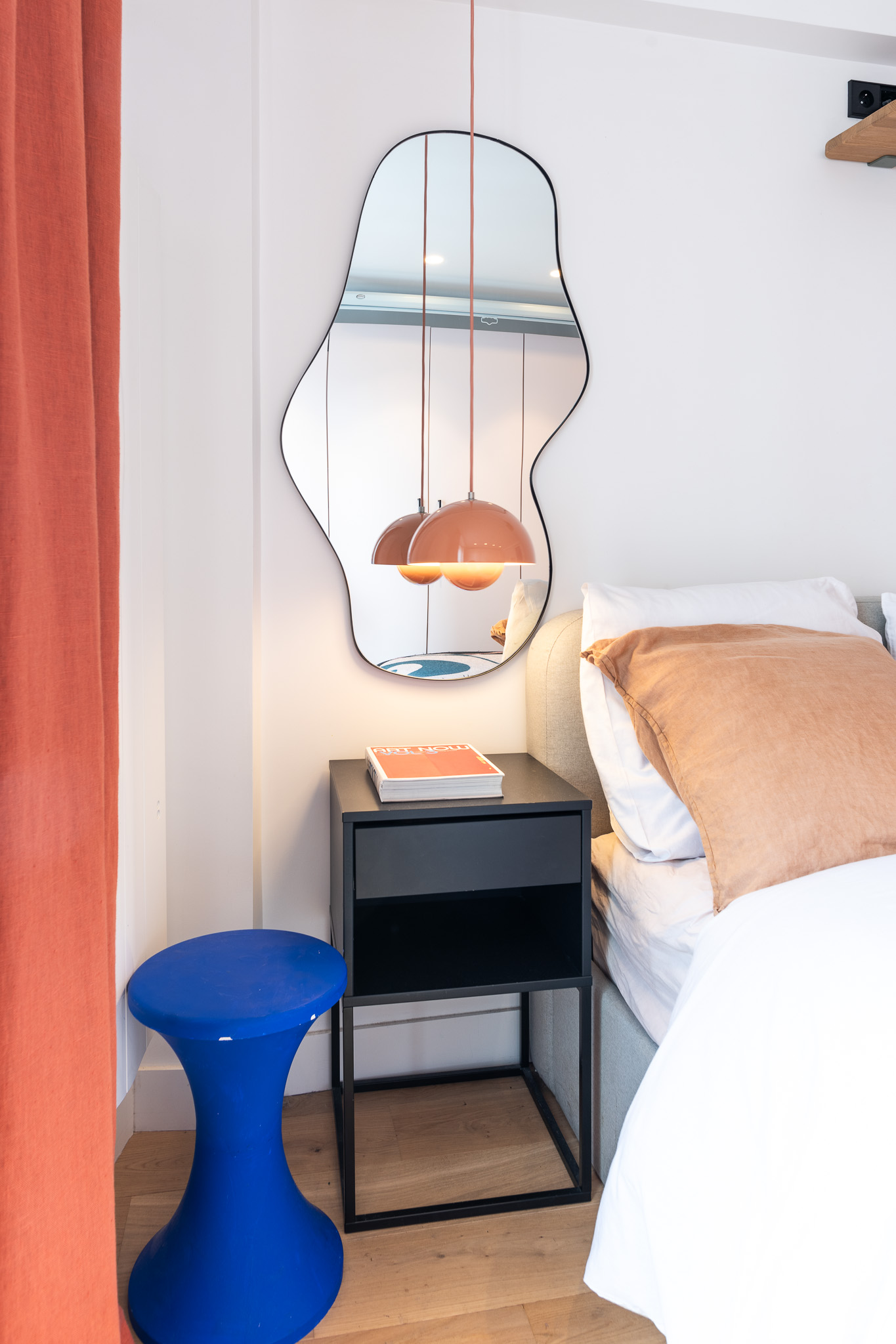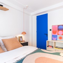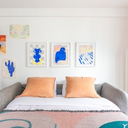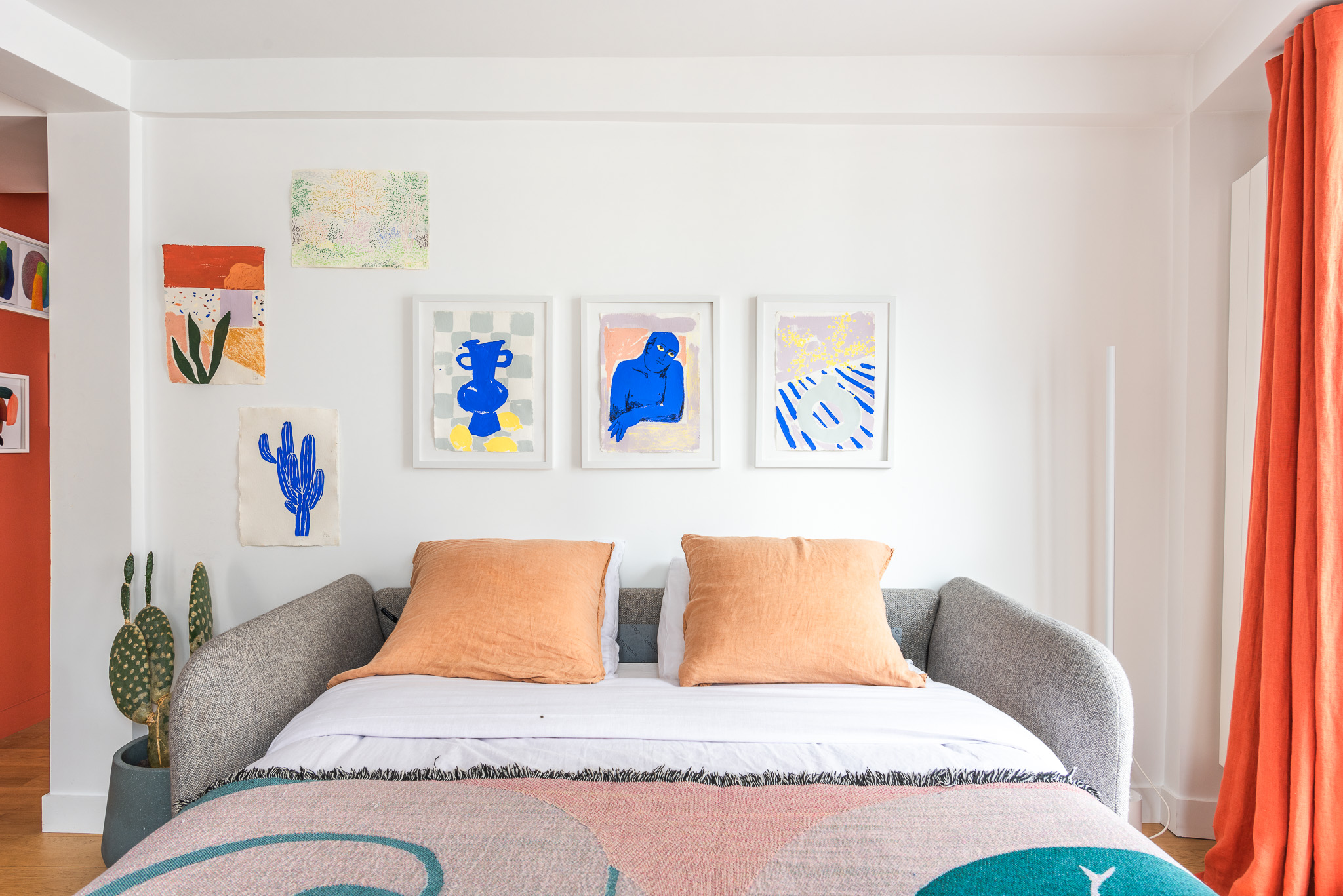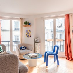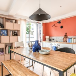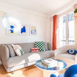 La décoration est composée d’un subtil mélange de couleurs, d’oeuvres originales d’artistes, d’antiquités chinées, de tissus confortables, le tout dans une atmosphère typiquement parisienne : chaleureuse et artistique.