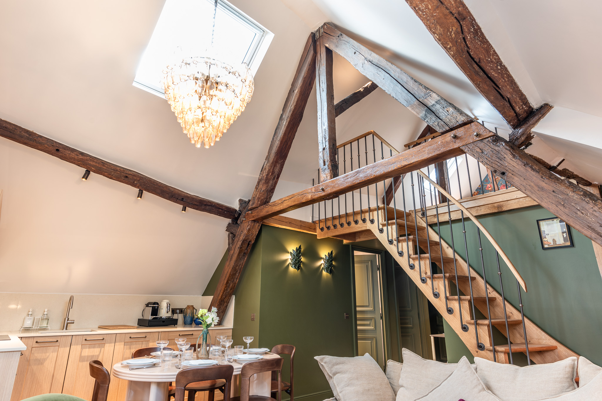 - 2 double bedrooms with queen-size beds (160cm x 200cm), 2 shower rooms, large living room + open kitchen