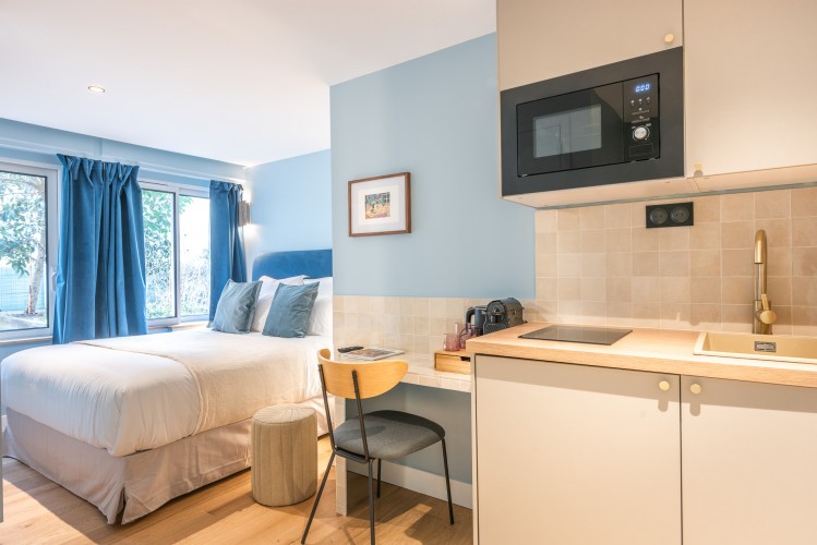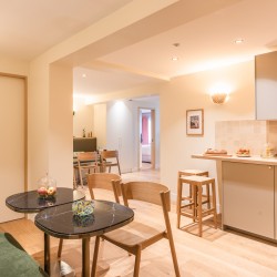 Maison Letellier is a luxury family apartment with 7 bedrooms each having a 5-star queen size bed, TV, high speed internet access, bathroom with shower, separate WC, kitchenette with stove, microwave, fridge, Nespresso machine, kettle and a dining / working table.