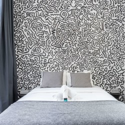 – Composed of 1 large living room with convertible sofa, kitchen fully equipped, 2 double bedrooms and 1 bathrooms + One dining space + One desk with iMac.