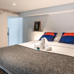 There are 2 double bedrooms with 4-star queen size beds (160×200) and personal wardrobe. The bedroom in the mezzanine also has a small sofa and armchair, as well as a flat screen TV with 100+ channels.