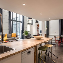 The loft is a 100m2 (approx. 1100 ft2) design apartment and has been entirely refurbished with high quality standards and materials.