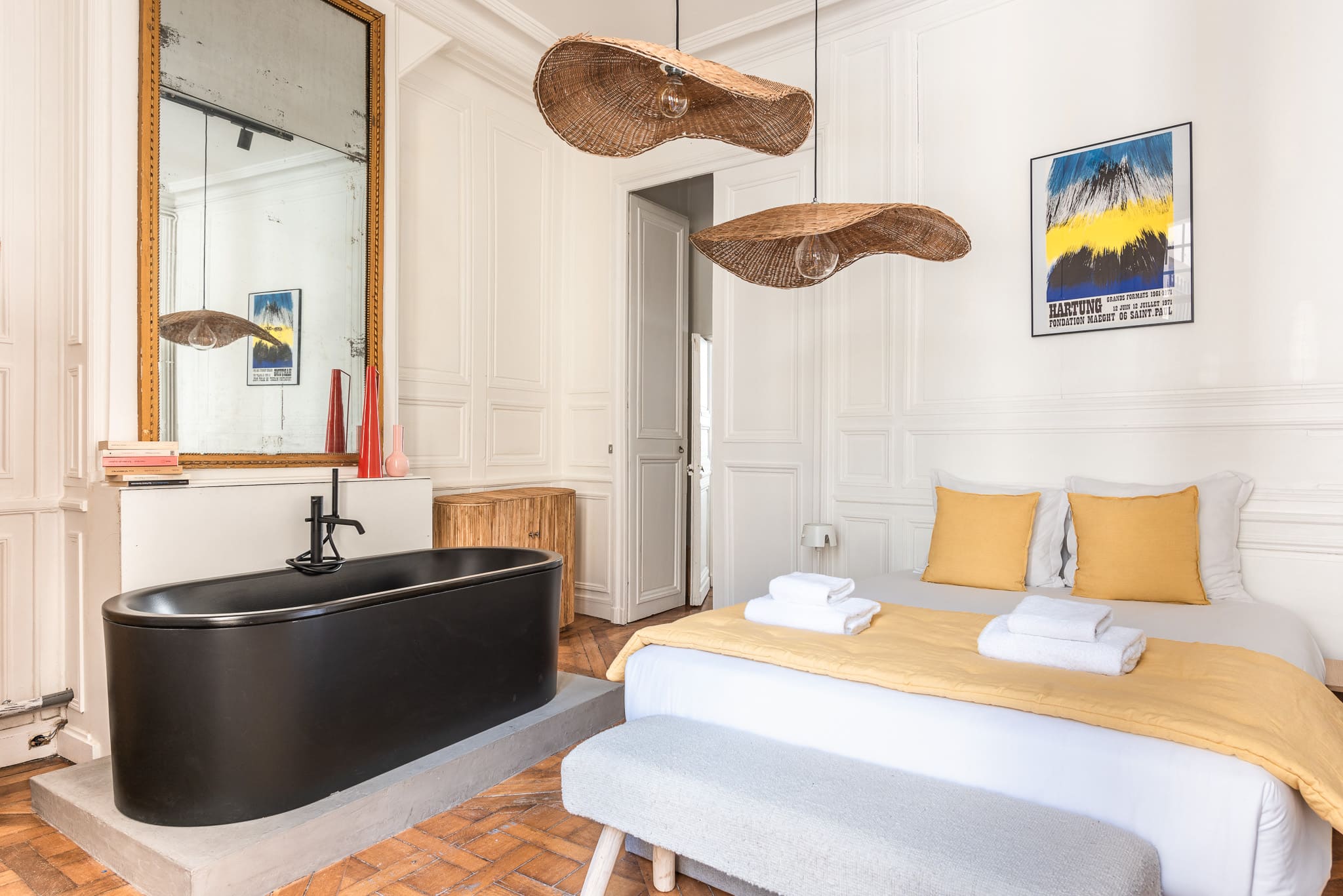 Très bel appartement, bien agencé, beau et confortable séjour. La rue étant potentiellement animée jusque vers 01h00, la chambre donnant sur cette rue peut être bruyante. L’autre chambre est très calme car donnant sur la cour intérieure. Literie ok. Séjour très agréable.