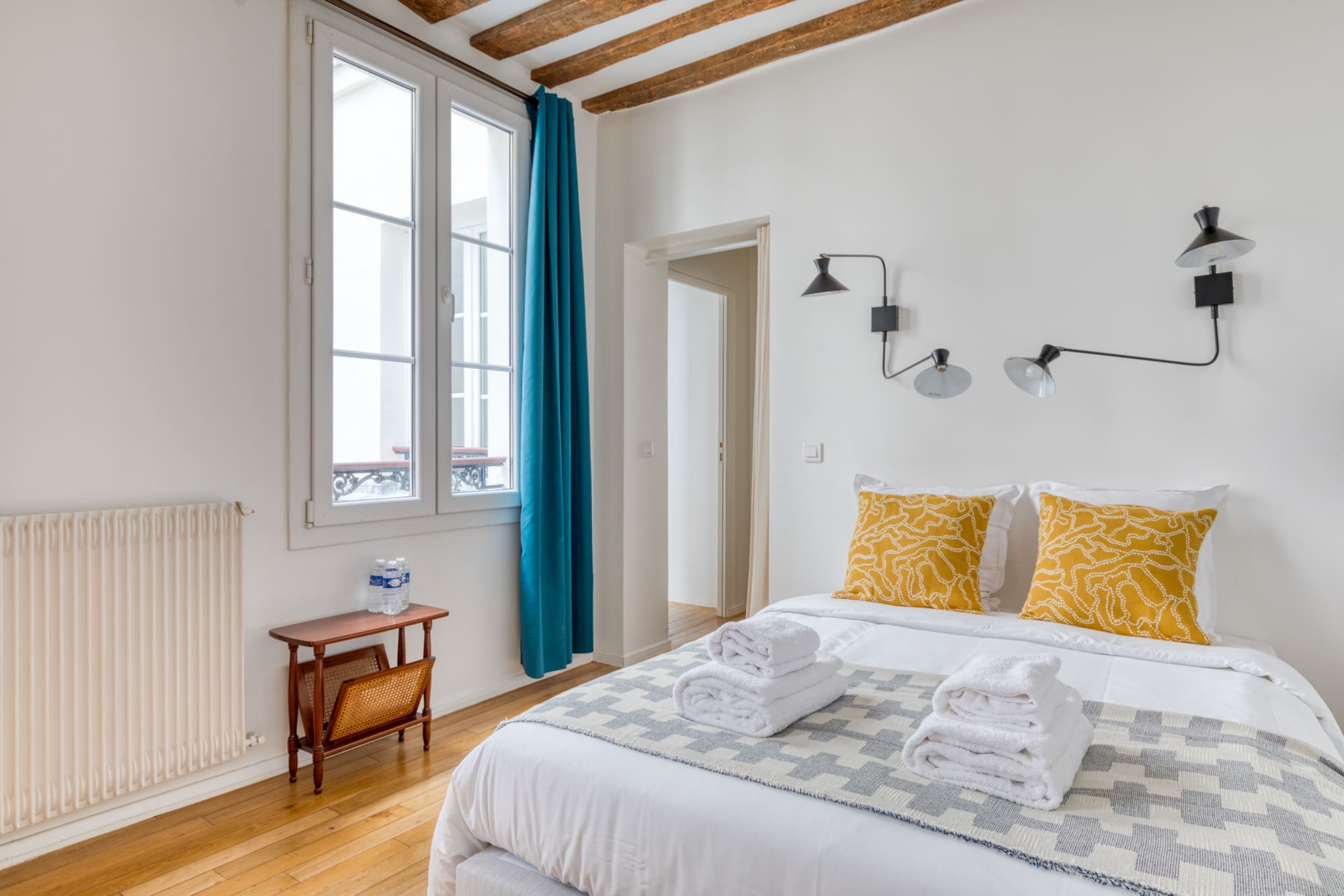 The flat is a 90m2 (e.q. 1000 sq.ft) apartment totally refurbished by architect with high quality materials and furniture. Its location is really extraordinary, at walking distance of the Louvre, Place Vendôme (5min), Tuileries. It has a large living room with sofas, TV (Netflix, etc.) and a dining area for 6. Bedrooms : 1 master bedroom with 4-star bed 160x200, large dressing, en-suite bathroom (shower) and toilets. 1 bedroom with 160x200 bed and closet. 1 bedroom with 140x200 bed and desk. 1 second bathroom with bathtub and washing/drying machine 1 second toilet separated Its kitchen is fully-equipped with stove, oven, fridge, Nespresso machine, Kettle, Toaster, dishwasher). All rooms have curtains. It is located at the 2nd floor (no lift) of a typical Parisian building from the 19th century. Very quiet because we are on the courtyard, not on the street side. Access to bedroom 1 and 2 need to go through bedroom 3