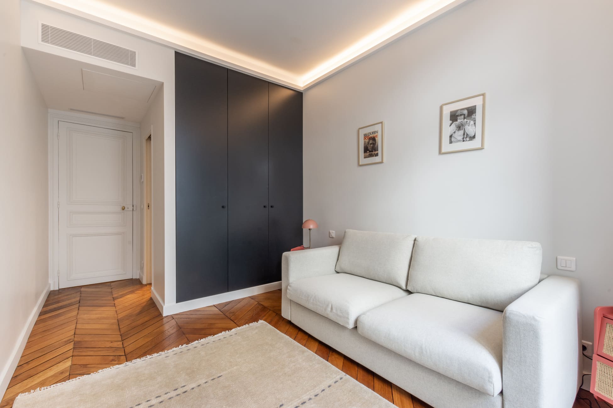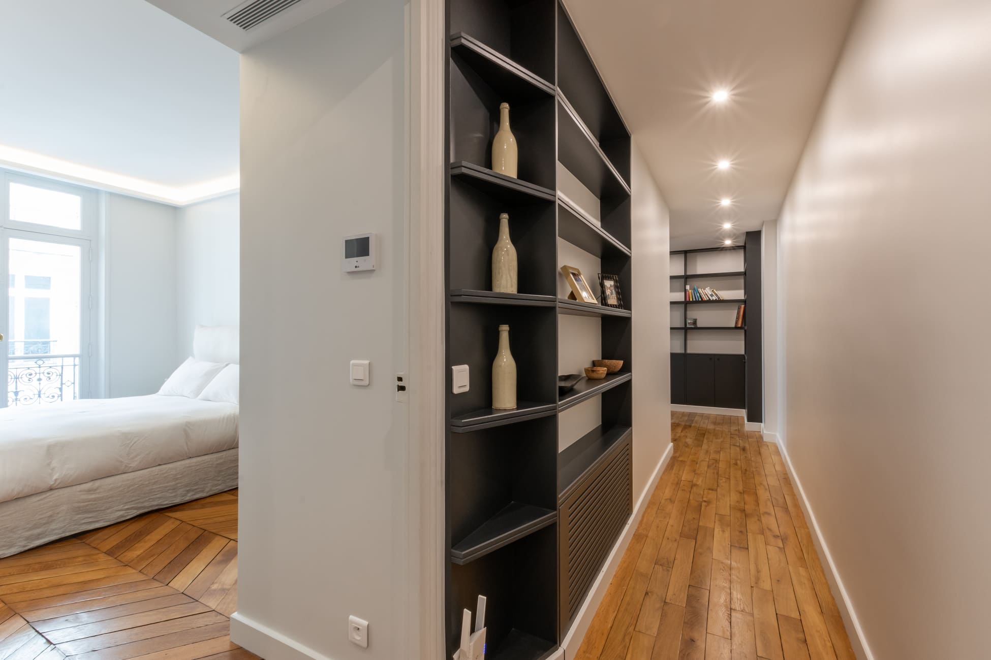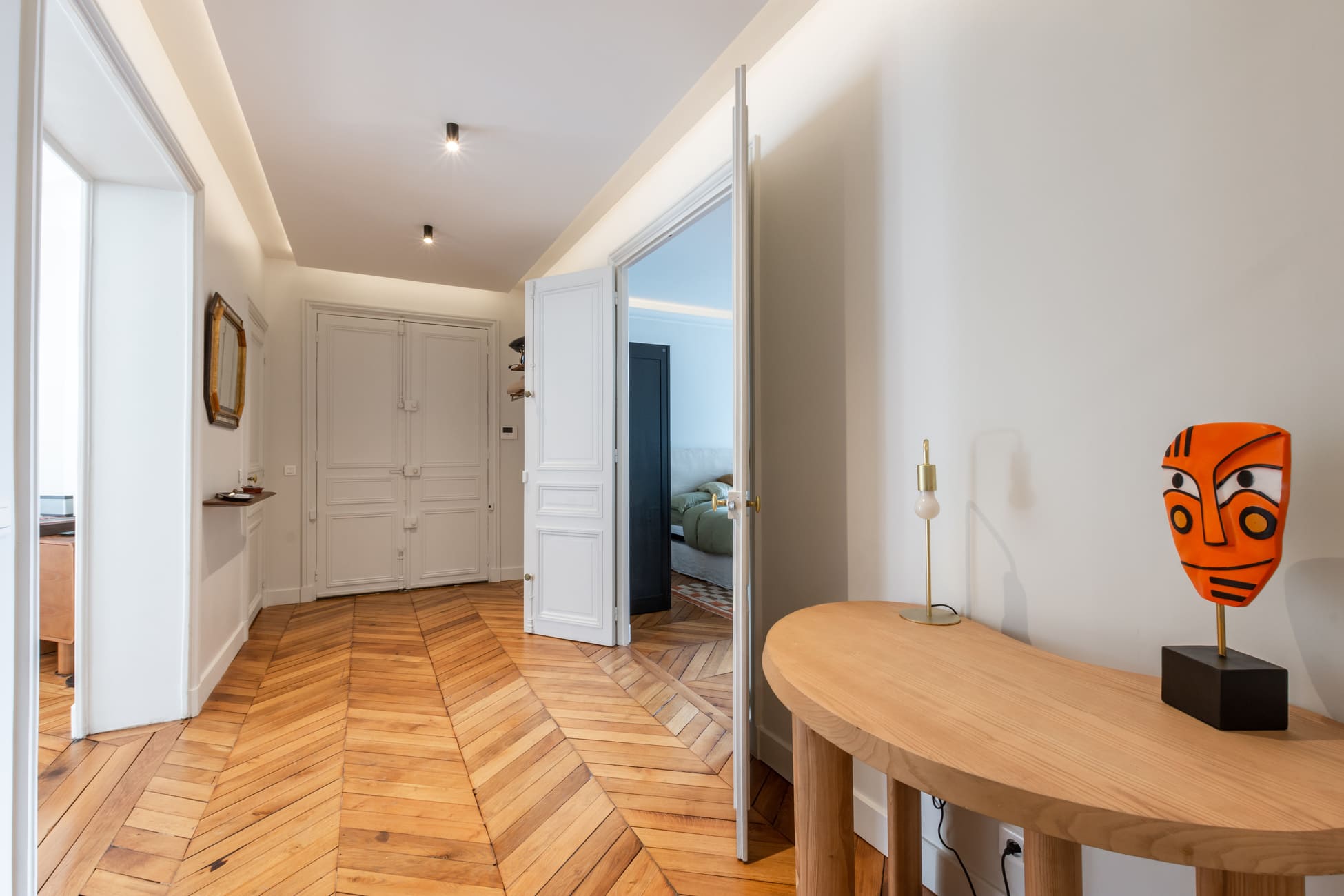 The area has excellent transport connections, making it easy to explore Paris. - Line 1: La Défense, Champs-Élysées, Palais Royal direct (7 min walk to George V or Etoile station) - Line 2: Montmartre, Pere-Lachaise direct (5 min walk to Ternes station) - Line 9: Nation, Montparnasse, Trocadéro direct (10 min walk to Franklin-Roosvelt station) **Trains / Stations** - Gare Saint-Lazare: 15 min by metro (Line 9) - Gare de Lyon: 25 min by metro (Lines 1 and 14) - Gare de l’Est: 30 min by metro (Lines 1 and 5) - Gare Montparnasse: 30 min by metro (Line 9) **Airports:** - Roissy (Charles de Gaulle): 60€ taxi or Uber (45 min). 11.50€ by RER B train (1 hour) from Châtelet-Les Halles (10 min by metro). - Orly: 50€ taxi or Uber (35 min). 8.70€ by Orlybus (30 min) from Denfert-Rochereau (20 min by metro). This prime location ensures effortless travel across the city and beyond.