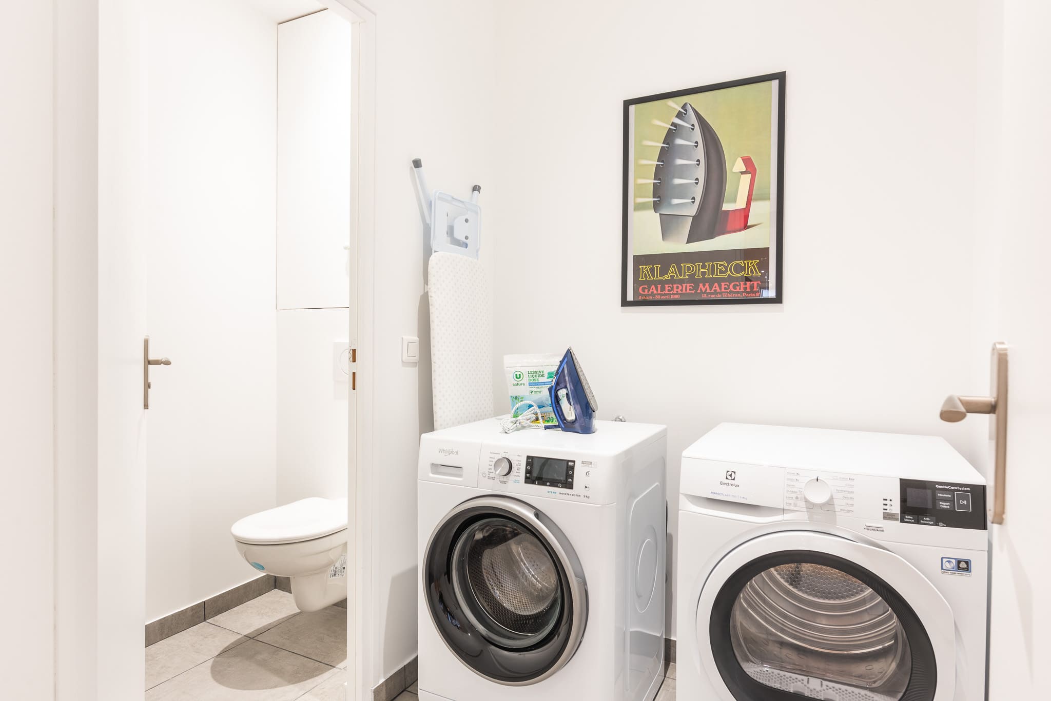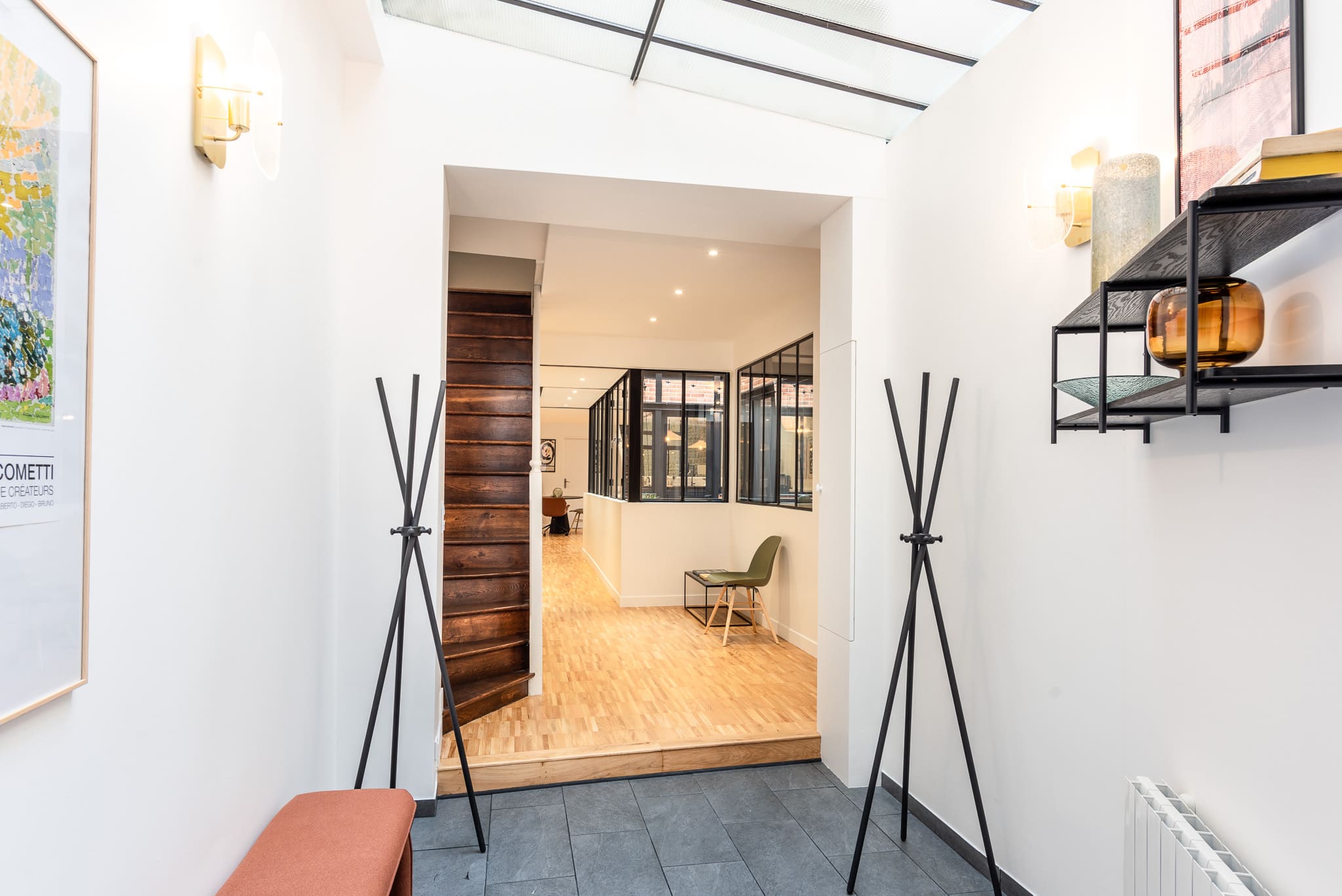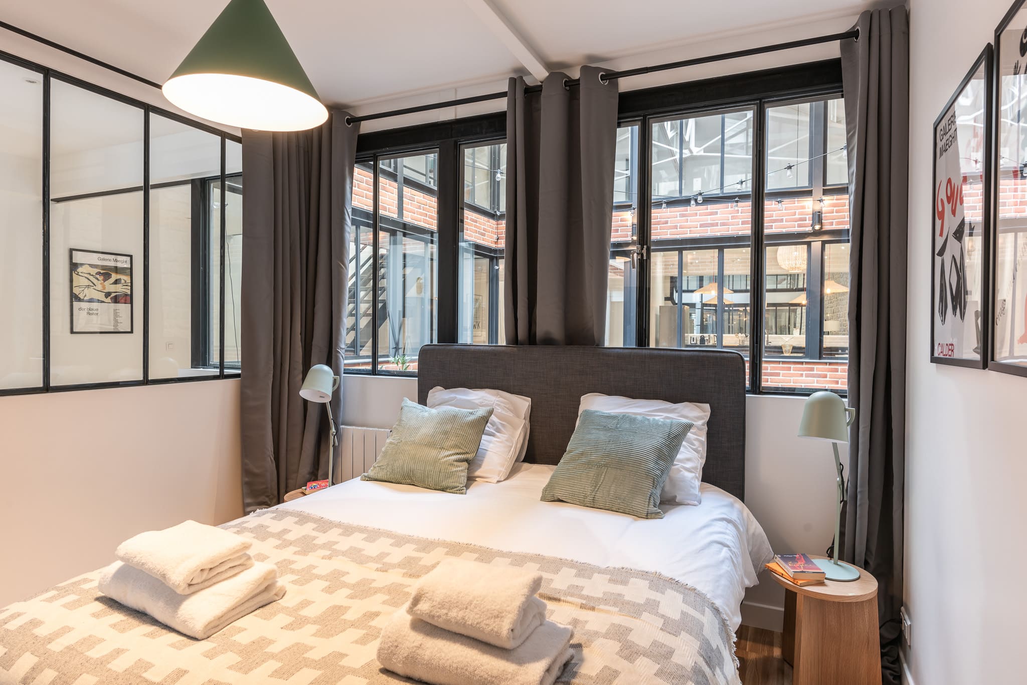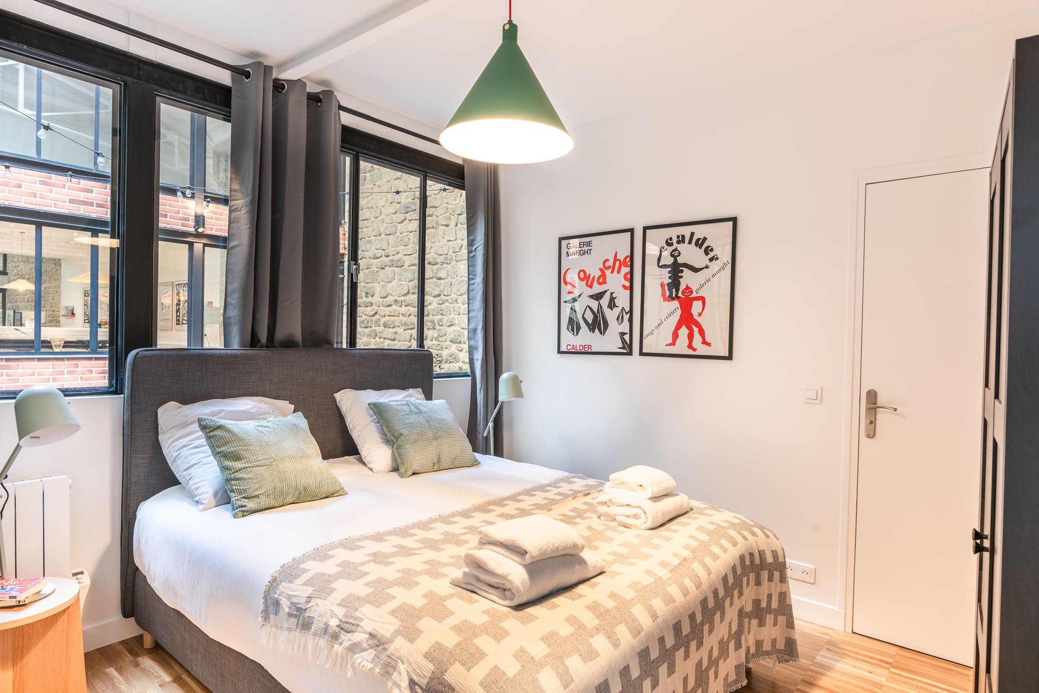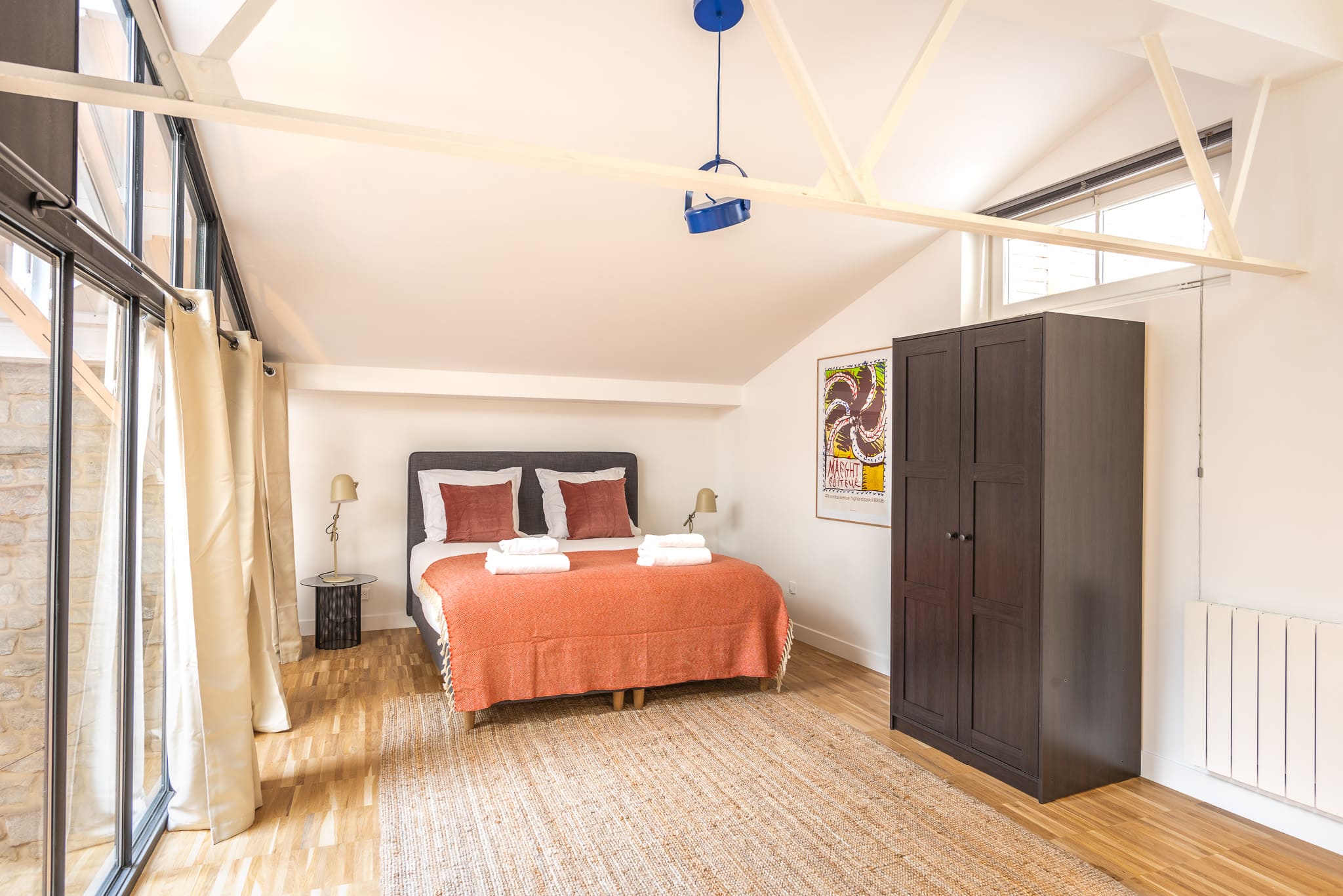 The loft is a 190m2 (about 1900 sq ft.) flat which has been totally refurbished by an architect and high quality / design materials and furniture. It has a large living room with TV (Apple TV + Netflix) and a working space as well as a dining area. It has 5 double bedrooms with Queen size, 4 bathrooms and 4 toilets. 3 bedrooms have en-suite bathroom, 2 bedrooms are sharing the last one. The kitchen is fully equipped with cooking plate, microwave, fridge, Nespresso machine, kettle, pans, toaster, washing machine, dishwasher, oven, ...) and a dining area. ALL windows have blinds to bring darkness and privacy. The loft is at the ground floor of a nice typical Parisian building in a courtyard. It is very quiet. It has a private patio which is also very beautiful.