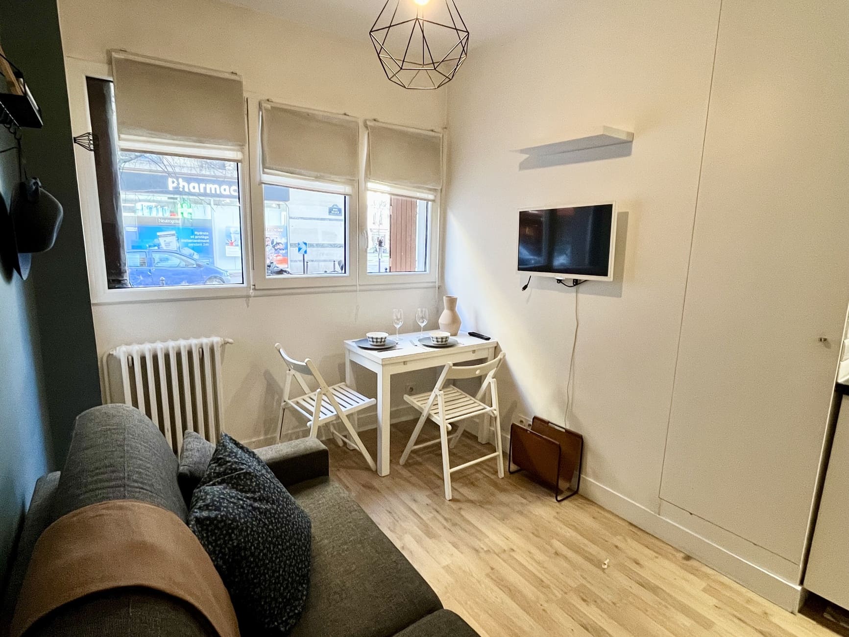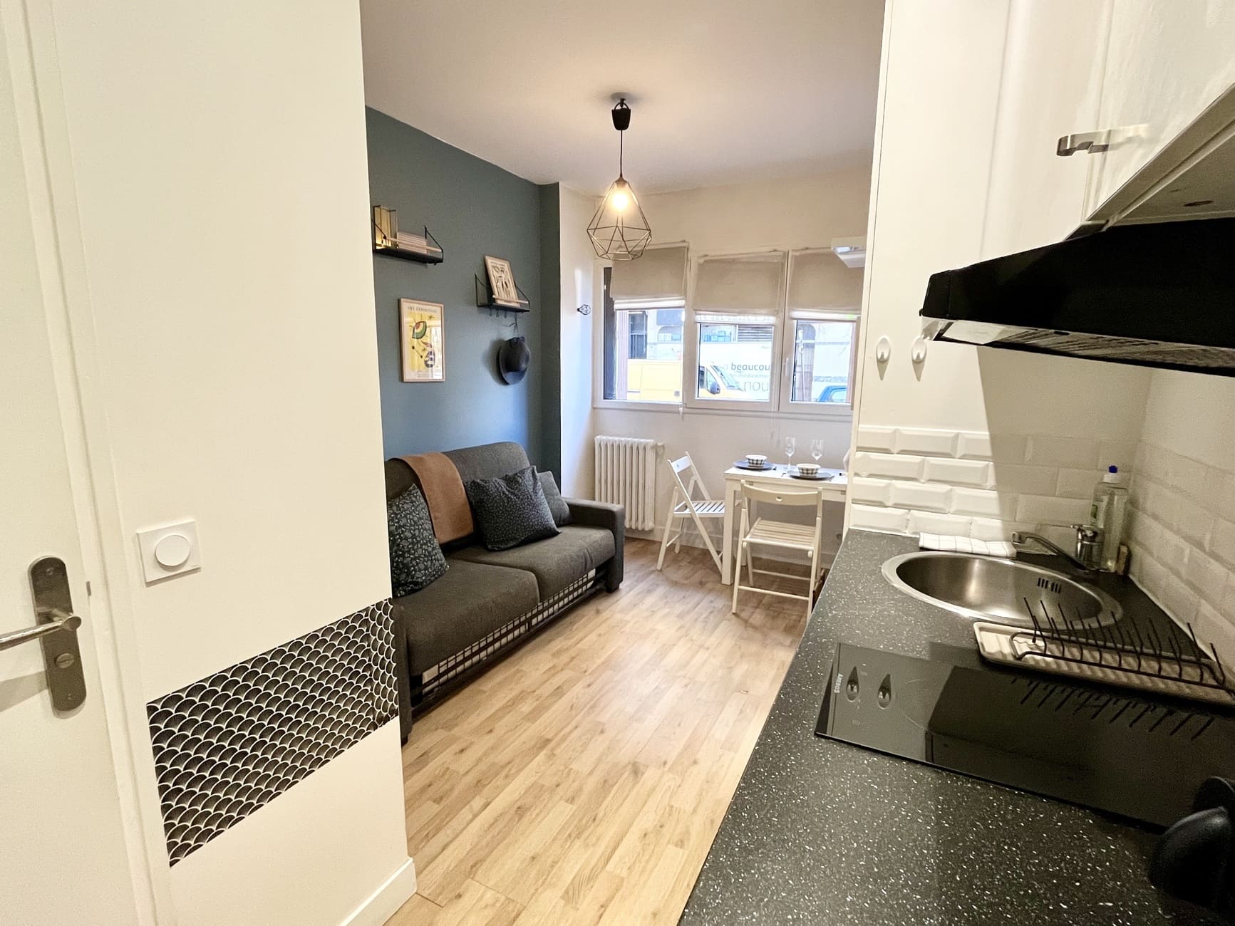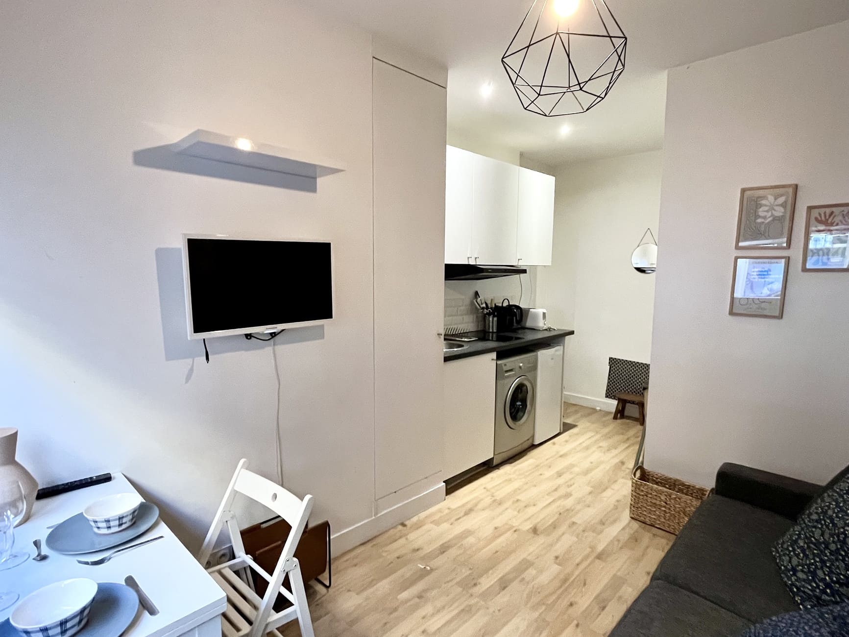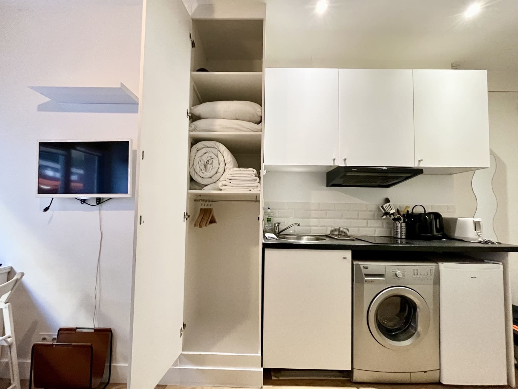 Nice studio with open kitchen : stove, microwave, utensils, fridge, Nespresso machine, kettle, toaster and washing machine. Night area with convertib...
