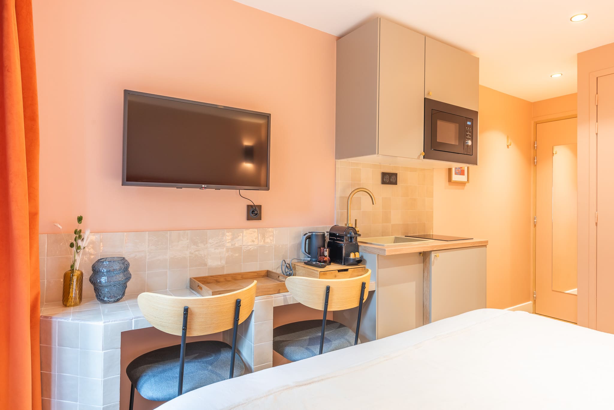Maison Letellier offers the comfort of a hotel and the charm of a typical Parisian apartment. Each of our studios are equipped with a 5-star queen si...