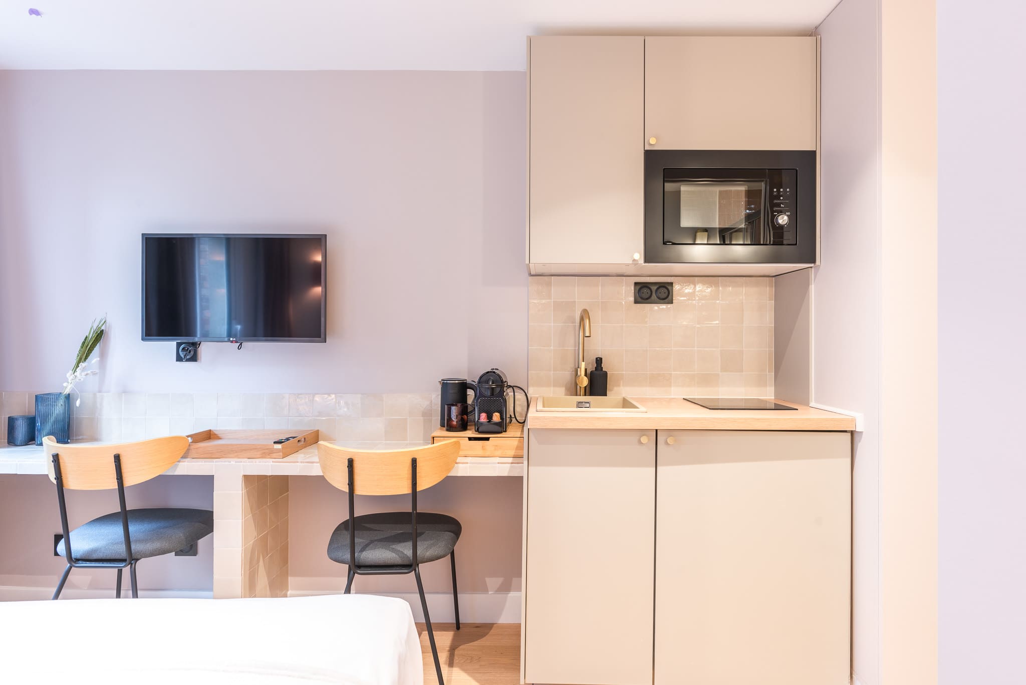 Maison Letellier offers the comfort of a hotel and the charm of a typical Parisian apartment. Each of our studios are equipped with a 5-star queen si...