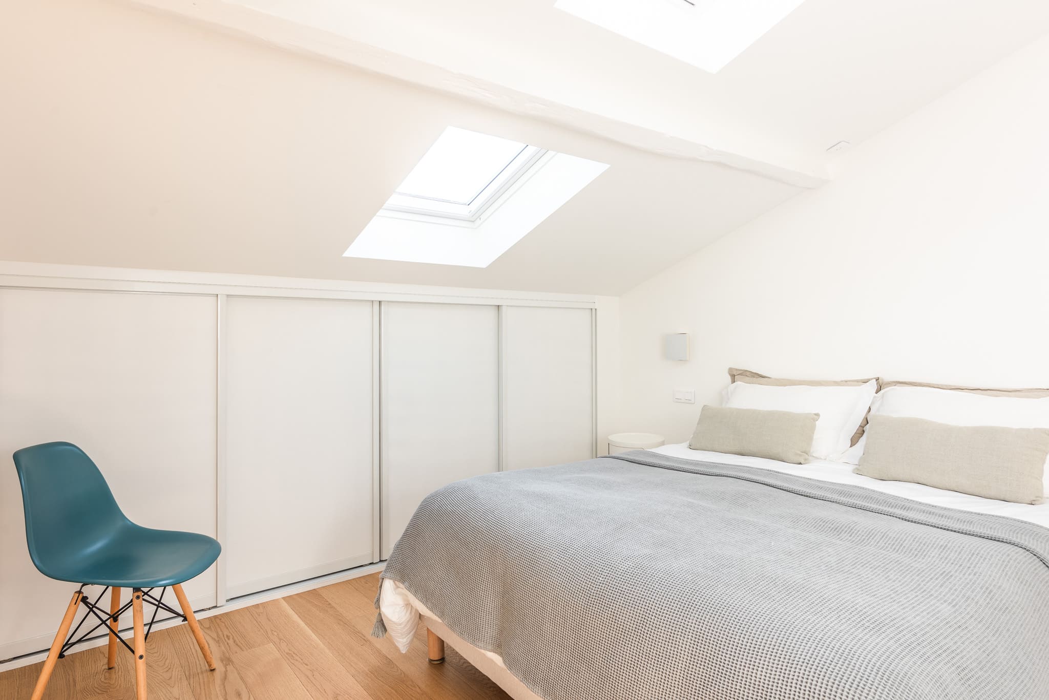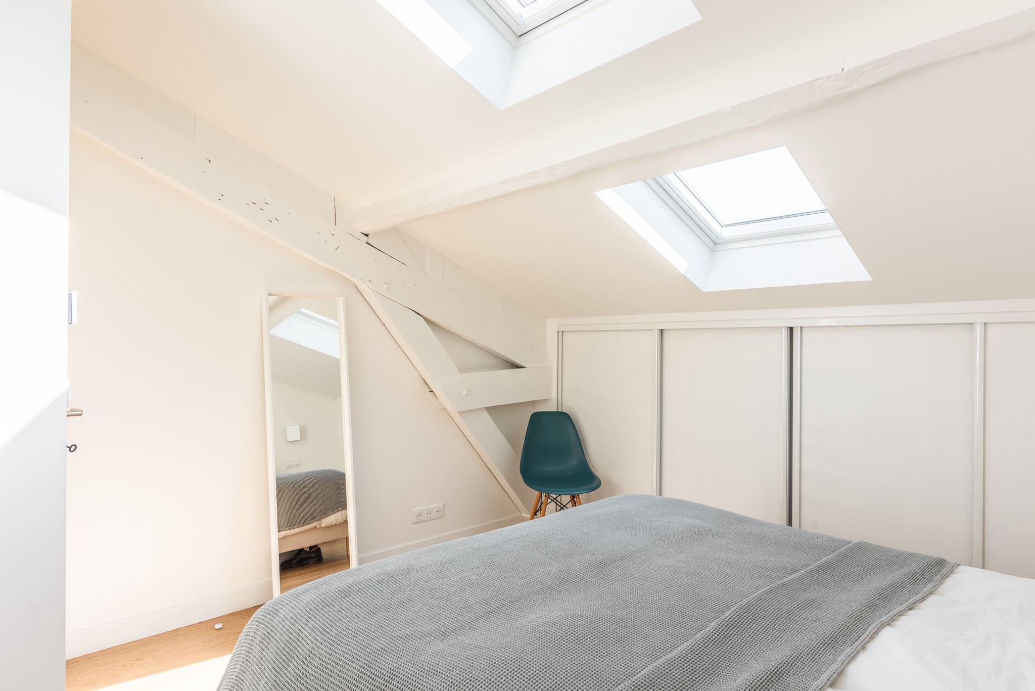 The flat is a 65m2 (e.q. 700 sq.ft) apartment totally refurbished by architect with high quality materials and furniture. It's a penthouse loft, very luminous. Its location is perfect, in the heart of the 11th district very pleasant neighborhood with lots of shops / restaurants, at 3 min walk from Metro rue Saint-Maur It has a nice living room with TV (Netflix, etc.) and a dining area, open to a fully-equipped kitchen. The first bedroom has a 4-star bed 160x200 and large dressing The second bedroom has a 140x200 bed and a chest of drawers. The bathroom has a bathtub and a laundry closet with washer/dryer machine The WC is separated. Its kitchen is fully-equipped with stove, oven, fridge, Nespresso machine, Kettle, Toaster, dishwasher). All rooms have curtains. The loft is at the 4th floor (no lift) of a typical Parisian building.