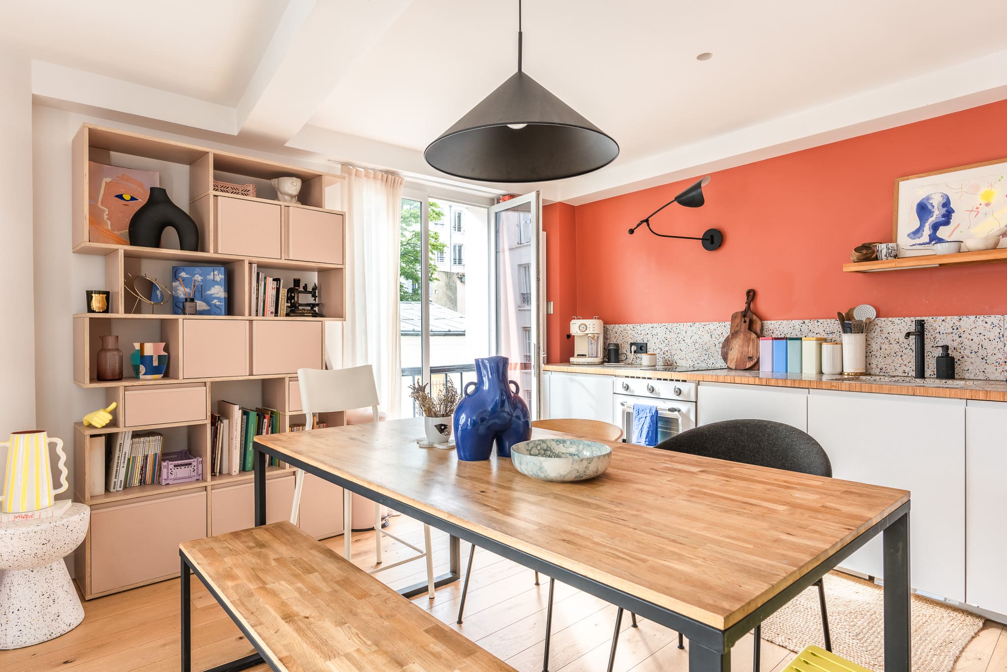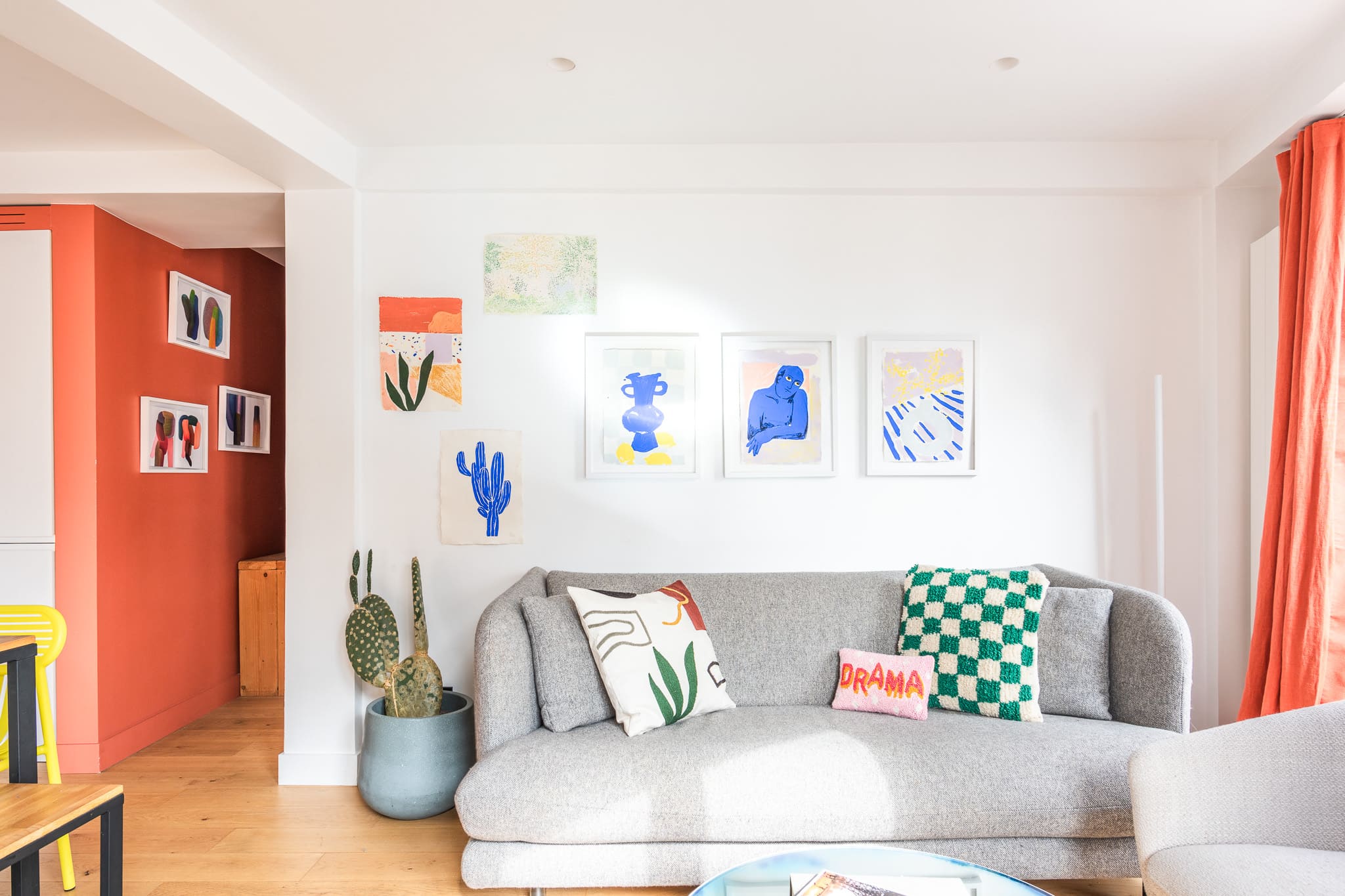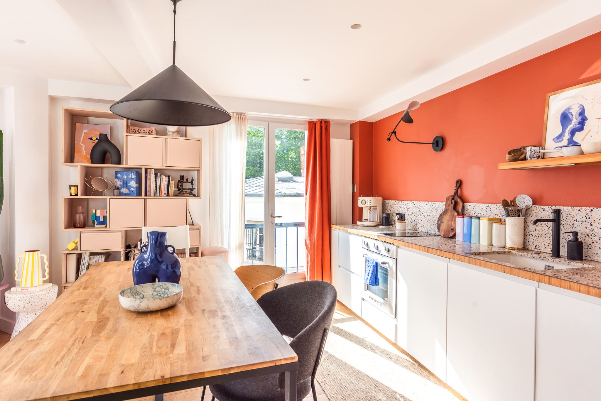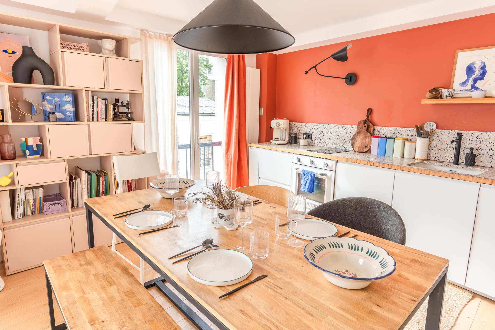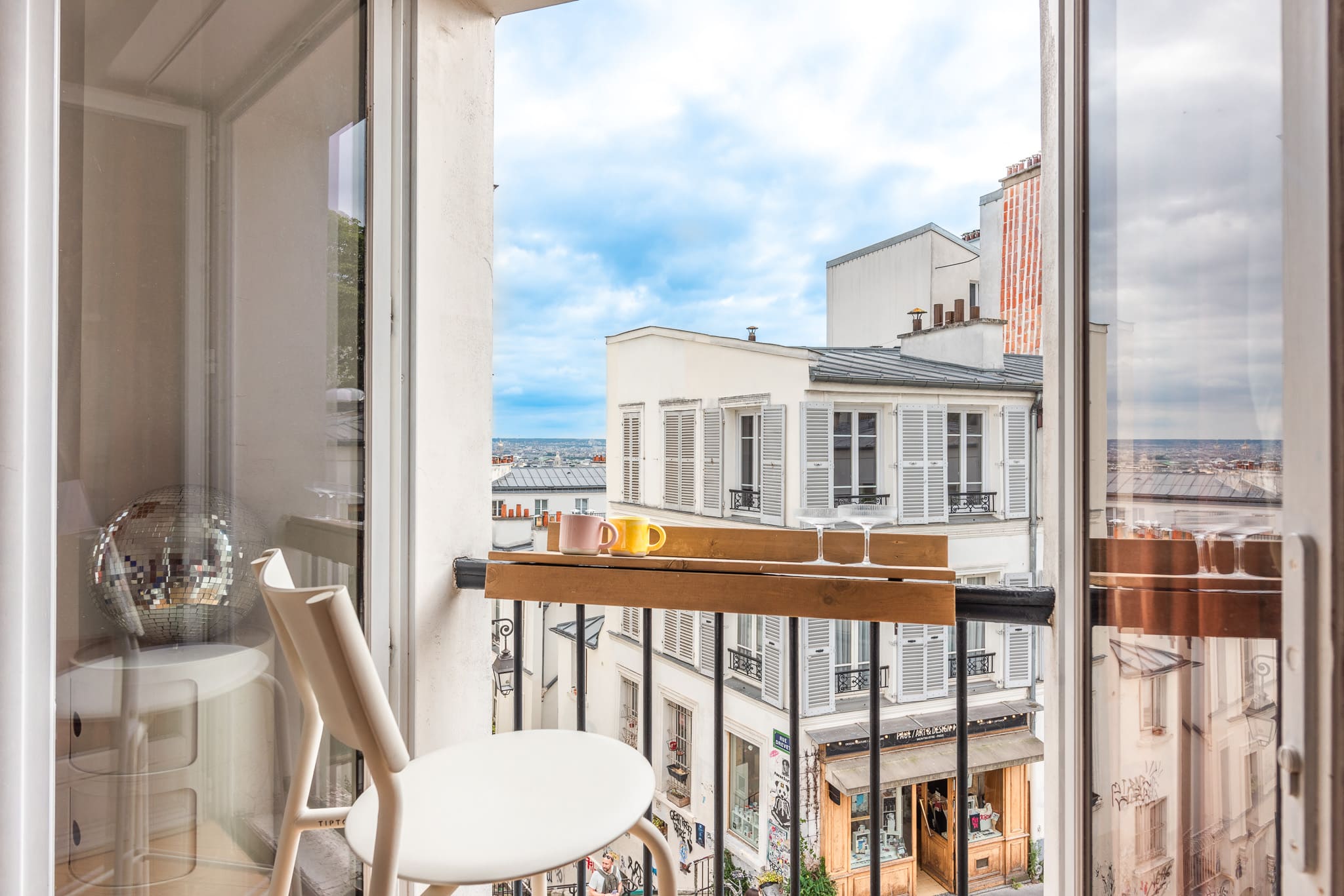 Nestled at the top of the Montmartre hill, very close to the famous Place du Tertre and the Sacré Coeur, you will benefit from the typically Parisian charm and an artistic and design spirit. The apartment can accommodate 4 people. The bedroom has a queen-size bed (160cm x 200cm) as well as a bathroom with a beautiful bathtub. The living room is equipped with a very comfortable sofa bed with double bed 140cm x 200cm. The magnificent fully equipped kitchen is open to the living room. Very nice space to have meals. The apartment is equipped with high-speed wifi access as well as a video projector in the bedroom for watching films and series. The kitchen is fully equipped with appliances: Fridge Induction hobs Necessary for cooking Coffee bean machine with grinder Kettle with tea bags Microwave Dishwasher Toaster The decoration is composed of a subtle mix of colors, original works of artists, antiques found, comfortable fabrics, all in a typically Parisian atmosphere: warm and artistic. You can walk to the main tourist spots and enjoy the many restaurants and bars nearby. We look forward to welcoming you :)