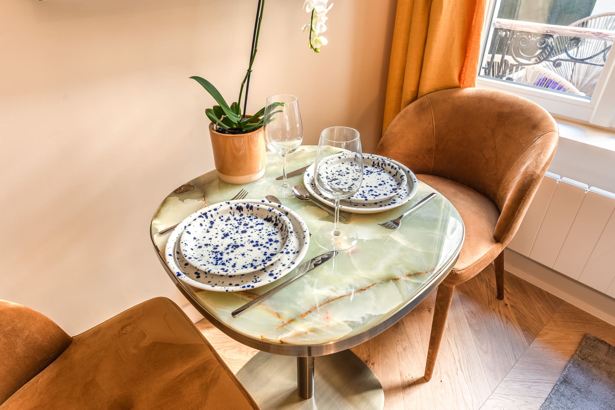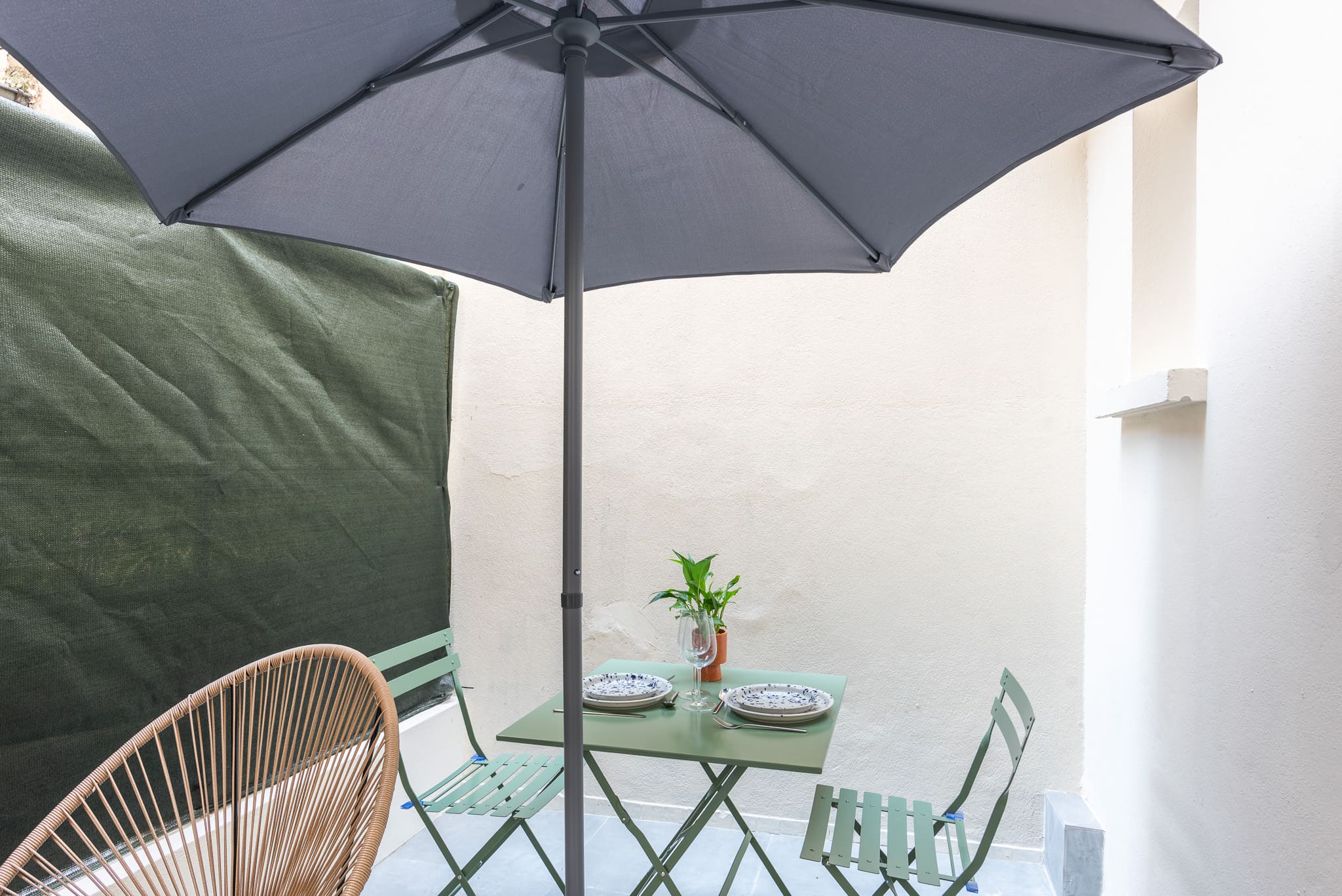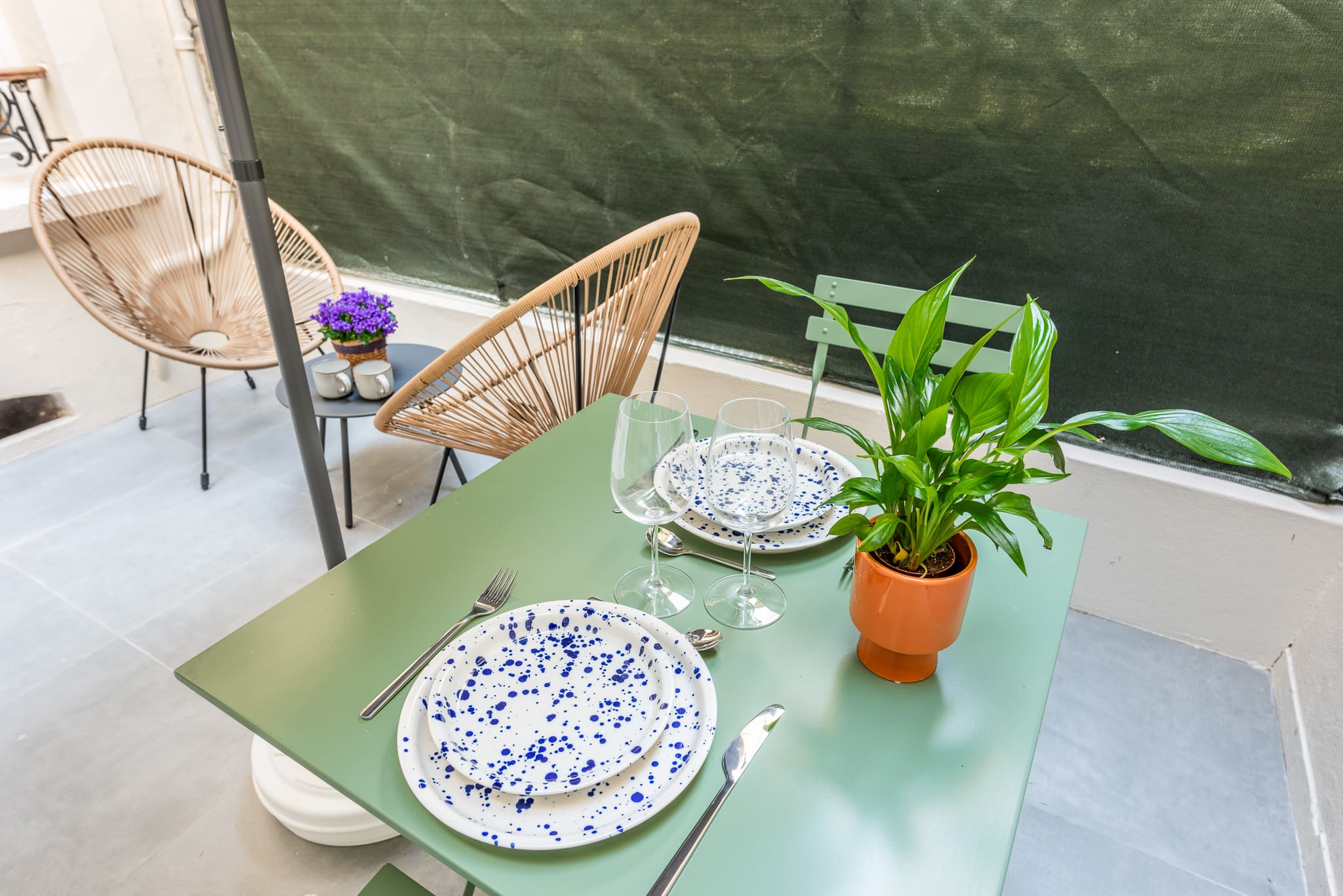 A small yet comfortable place with 10-15 minute walks to the closest metro stations. The terrace was disappointing as we found the patio furniture uncomfortable. It’s also right next to the trash room, so the smell lingers a bit.
