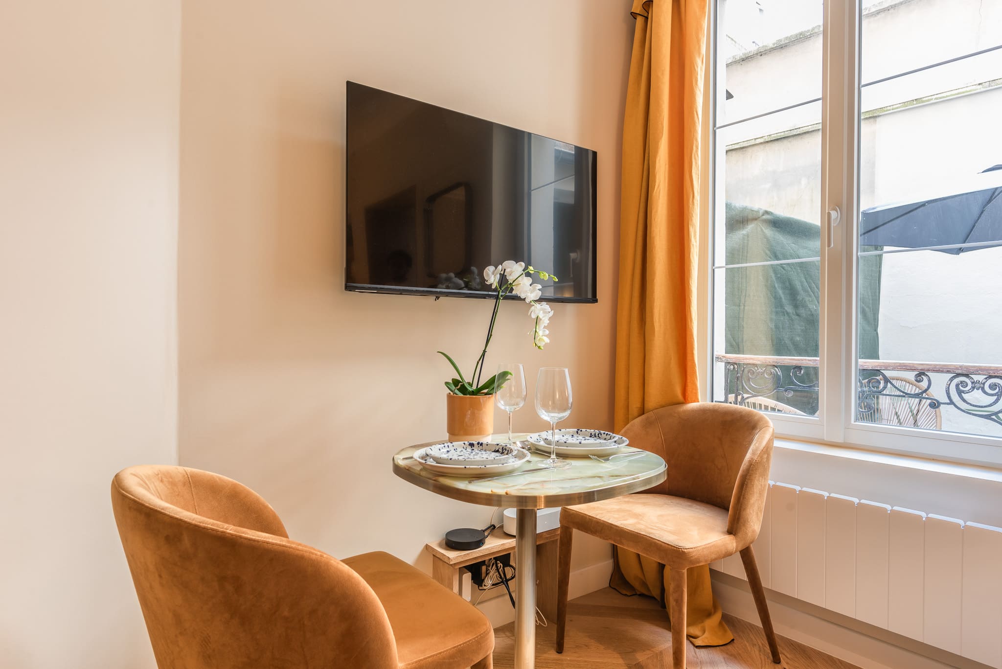 Charming studio equipped with a 5-star queen size bed, TV, high speed internet access, bathroom with shower and WC, kitchen with stove, microwave, fridge, Nespresso machine, washing / drying machine, kettle, toaster and a dining / working table. This studio and its private terrace measures 28m2 and is located in an inner courtyard, very quiet. It is very comfortable and decorated with high quality furniture to make your stay in Paris outstanding. Located at 10min walk from Montmartre and 5 min walk from Metro you can enjoy all Parisian areas very easily !